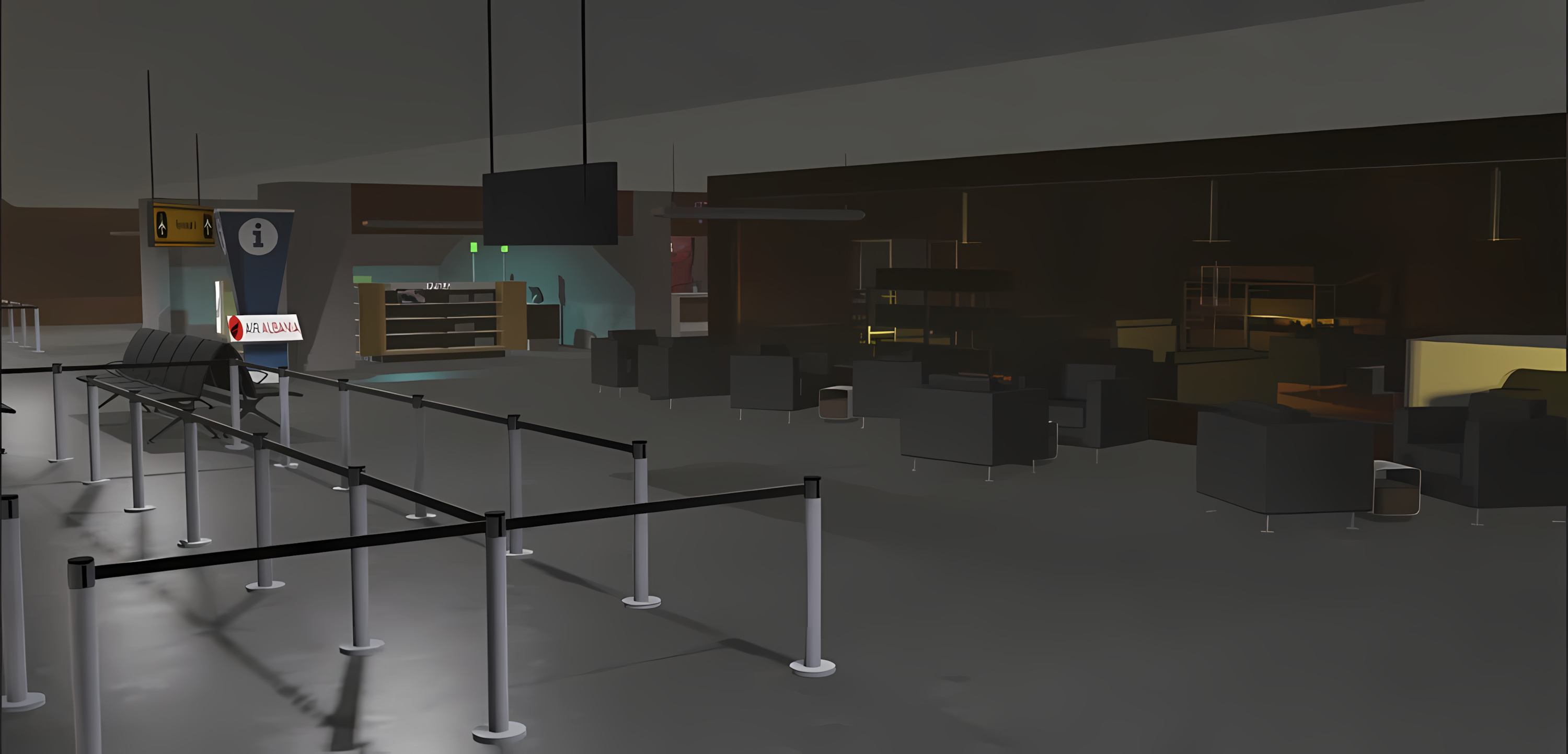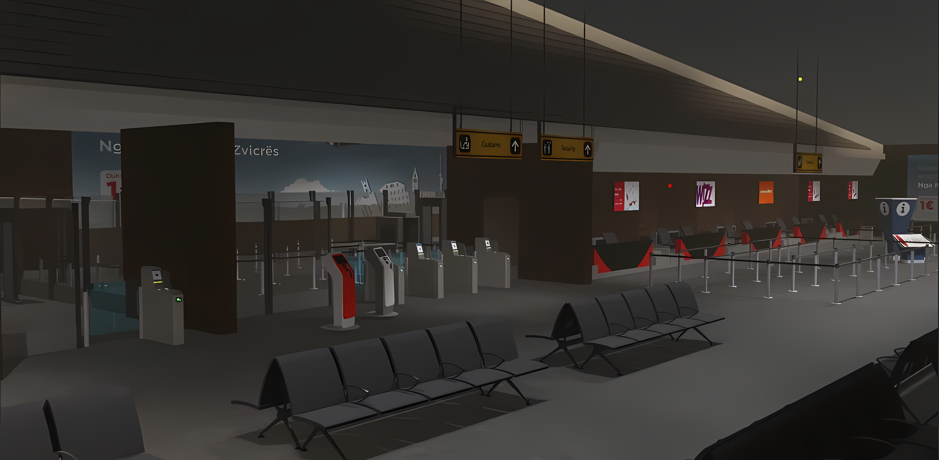 A medium sized local Airport that has everything you need. Great for starting your own ro-aviation group. Comes along with a lot of tech, such as security NPCs, self-checking, baggage check-in, a fully detailed Airplane with 3 classes, ground crew staff, VIP lounge and normal lounge, shopping duty free, and a destination airport.