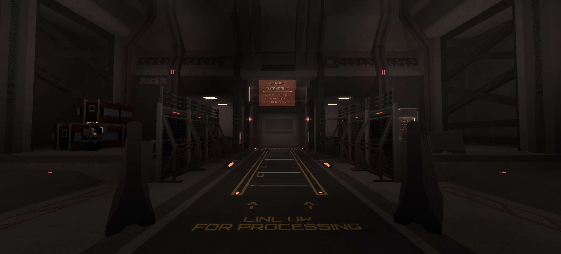 Cyberpunk Border delivers a sprawling 6000 x 8000 stud environment set in a dystopian desert world where technology and conflict collide. The fully scripted border includes permit detectors, interactive gates, and dynamic NPCs like Joe who offer missions and vendor interactions that influence gameplay. The lighting and terrain create a striking atmosphere across both outdoor zones and interior complexes. Inside the border, players encounter military spawns, throne rooms, and varied combat spaces designed for intense encounters and immersive roleplay.