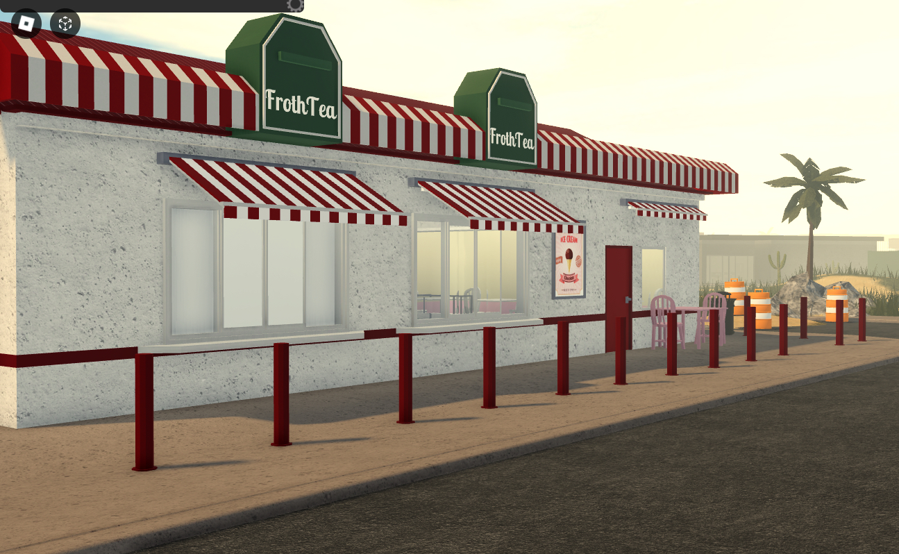 FrothTea offers a warm and inviting cafe interior focused on drinks and sweet treats. Seating and table arrangements encourage social interaction, while the outside area adds atmosphere and visual depth. Props such as cash registers and ice cream items help ground the build in a believable service environment. It fits naturally into city streets, malls, or dedicated food districts.