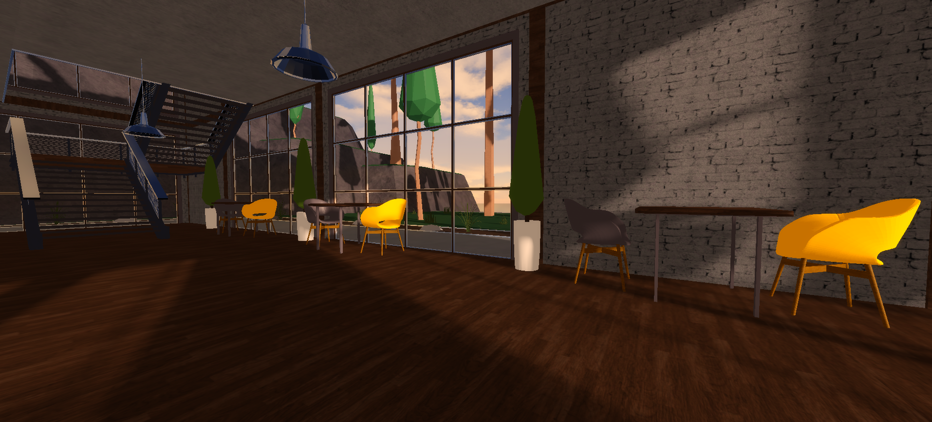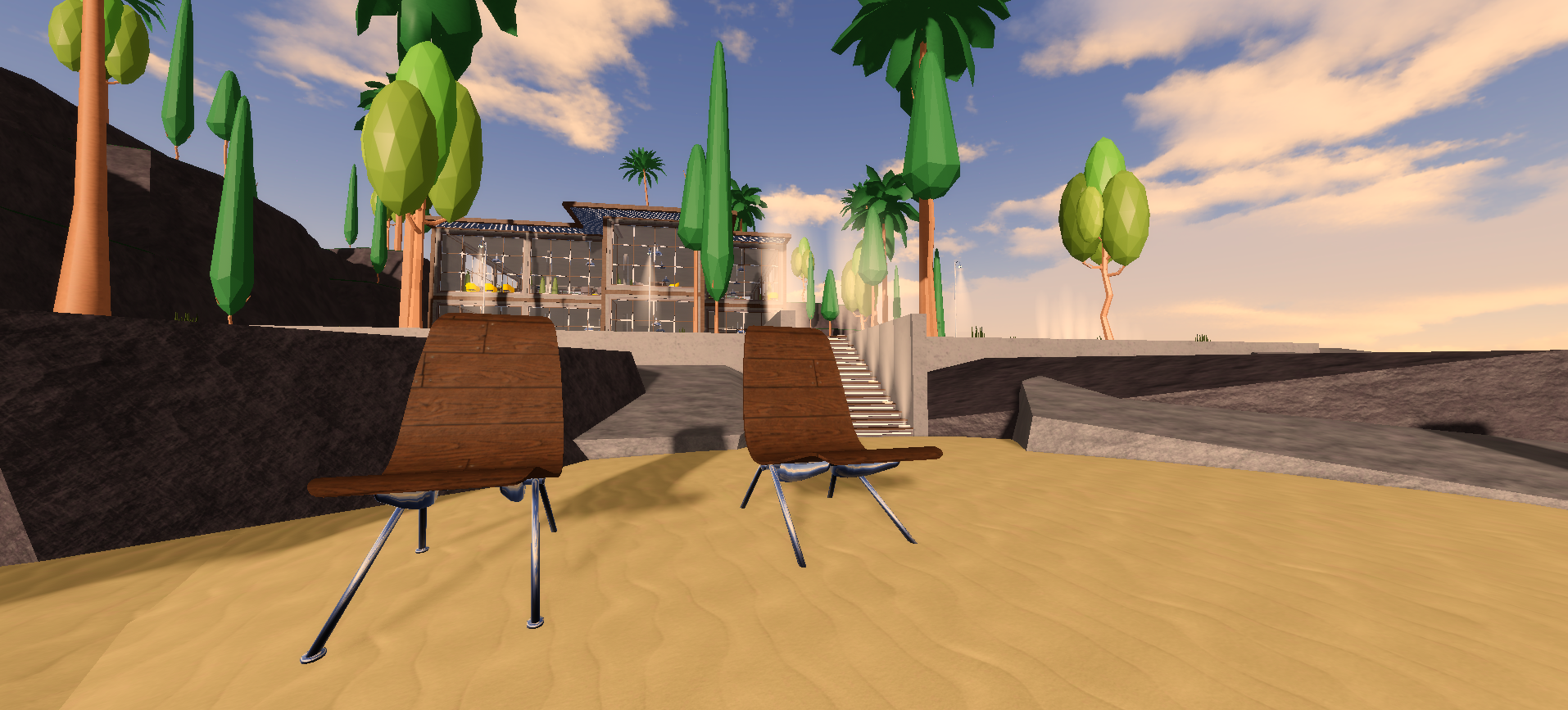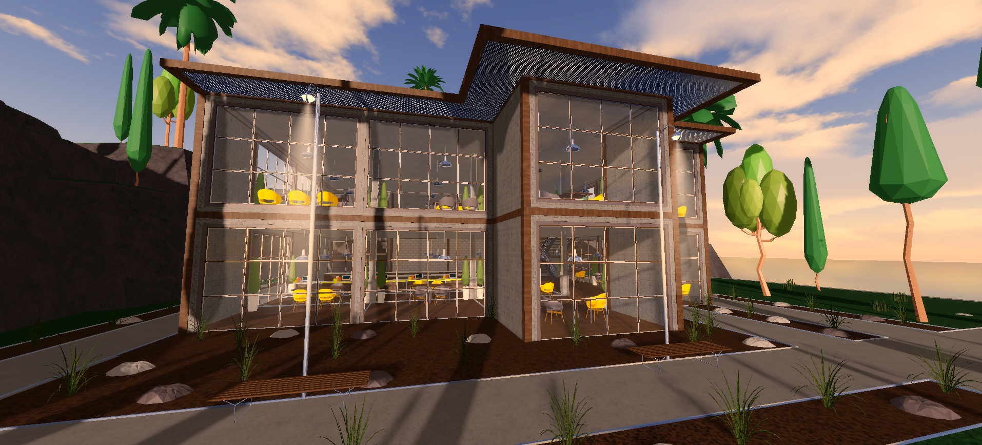 Juice Bar delivers a polished island themed cafe environment featuring high quality interior design, strong lighting, and detailed terrain. The main building includes a seating area, ordering station, beach zone, outdoor seating, and a second floor with additional tables. A clothing merch area adds detail and atmosphere, while the environment remains fully customizable for roleplay, social hangouts, or beach themed experiences. Its clean layout and tropical feel make it ideal for relaxed exploration maps.