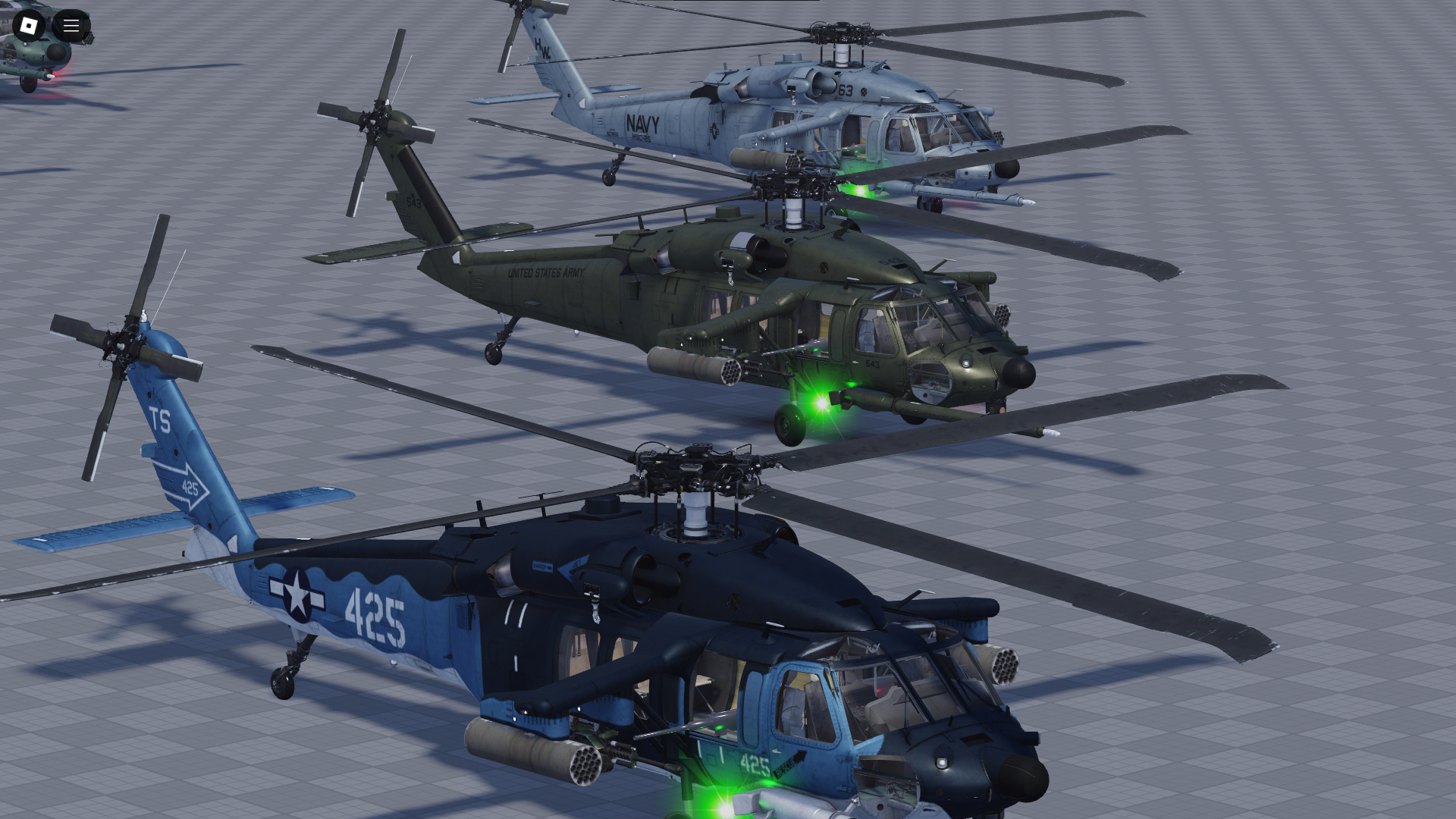 MH-60L delivers a practical rotorcraft experience for Roblox, combining detailed visuals with scripted flight control for stable handling. It suits rescue operations, police patrols, and milsim missions, with cockpit focused detail and optional systems like FLIR, weapons, or radar depending on the variant. Perfect for cinematic insertions and day to day roleplay flights.
