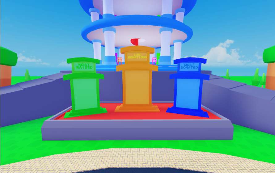 Designed as a modern donation plaza experience, this map delivers an interactive environment centered around social engagement and contribution driven gameplay. High quality interiors, lighting, textures, and terrain create a polished presentation, while detailed stands and advertisement boards encourage player interaction. Donation leaderboards introduce progression and competition, supported by visual set pieces such as a giant blimp and a rocket themed donation centerpiece. A detailed shop area with interior stands adds structure, making the map ideal for community driven events and social fundraising gameplay.