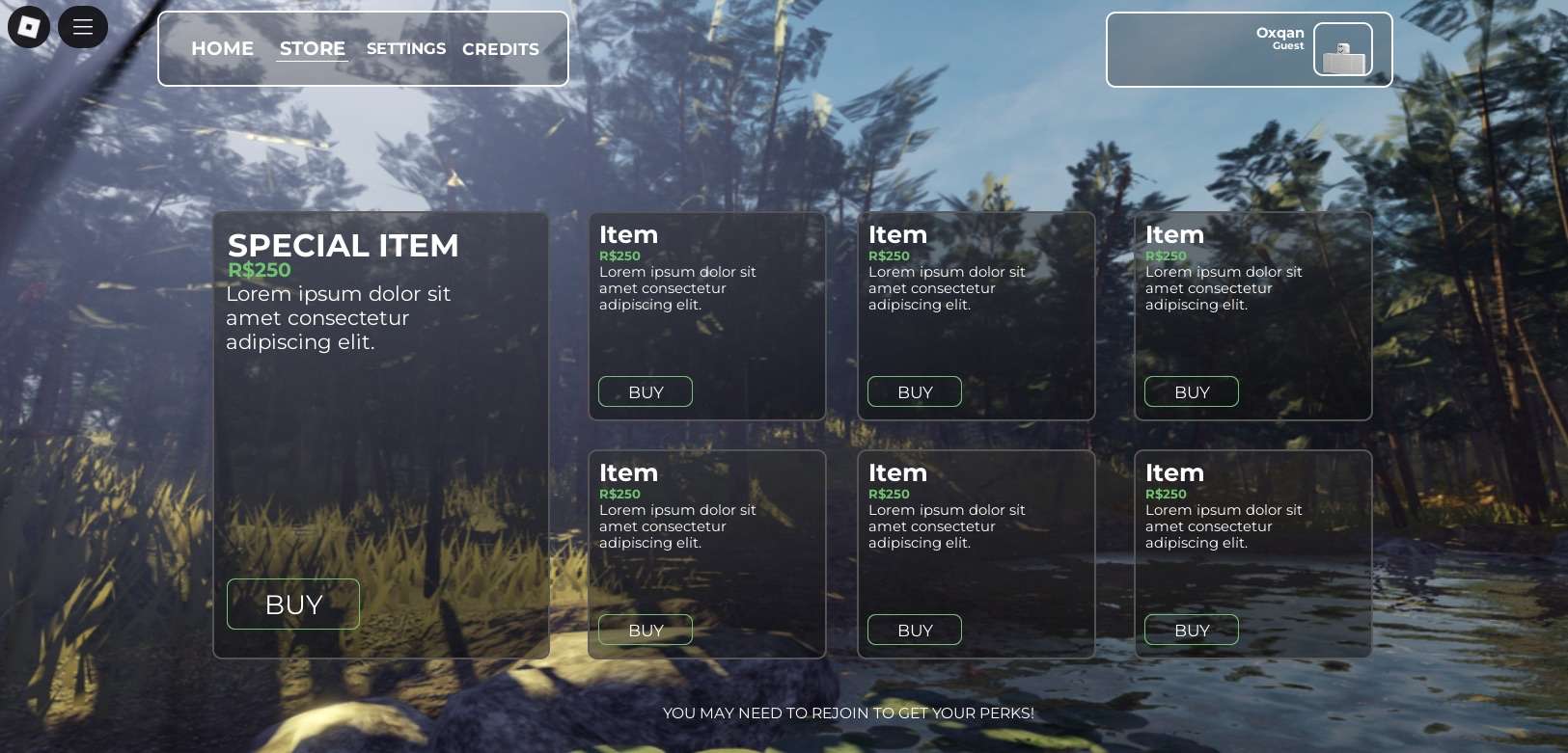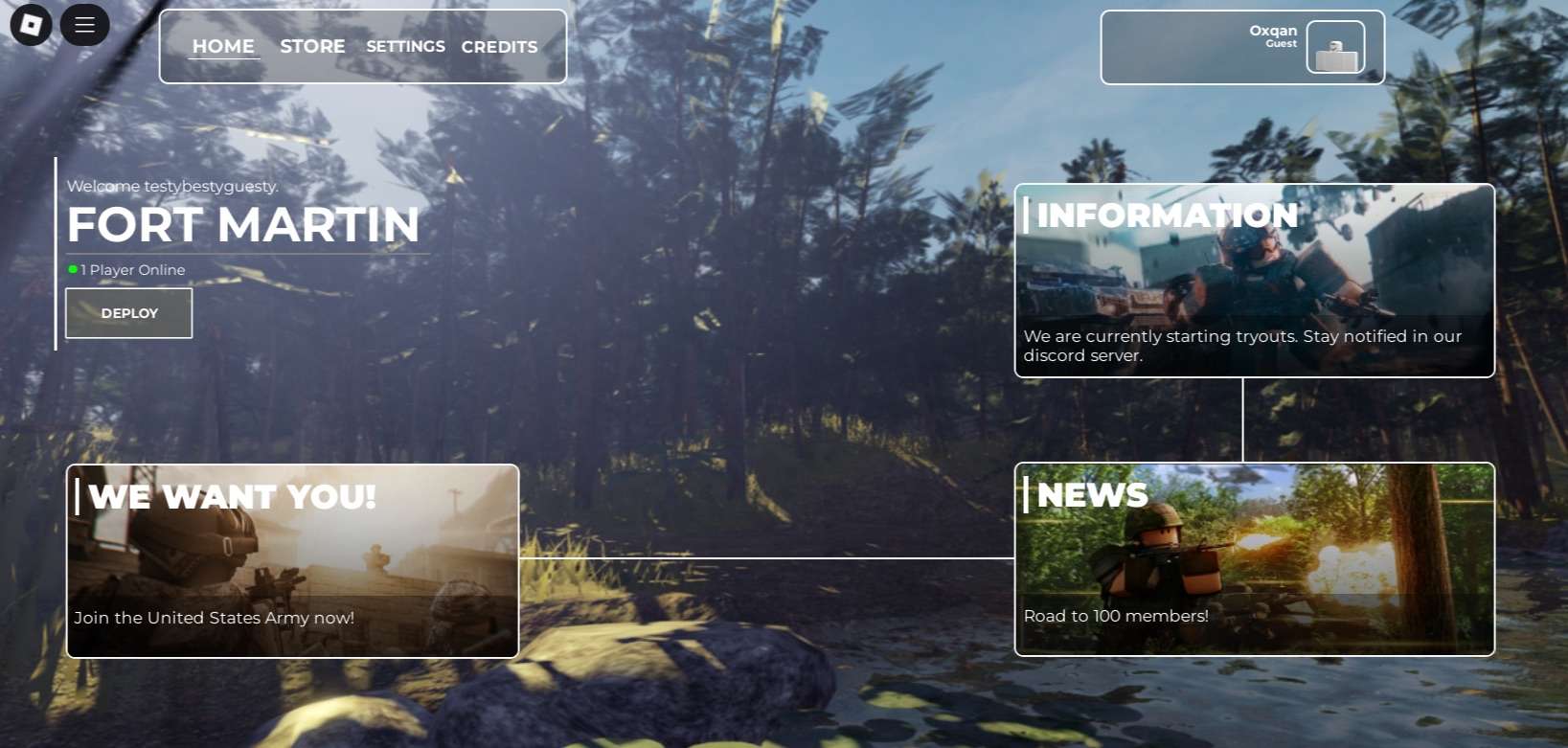 Structured as a clean and efficient military themed interface, Project Adroit delivers a streamlined user experience designed for tactical Roblox games. The layout focuses on clarity and immersion through well organized sections such as home, deploy, store, profile, settings, and credits. Real time player activity tracking and configurable gamepass cards support practical game integration. Visual polish is enhanced through smooth animations, background audio, and responsive button feedback, while configurable settings allow performance and visual adjustments without affecting usability.