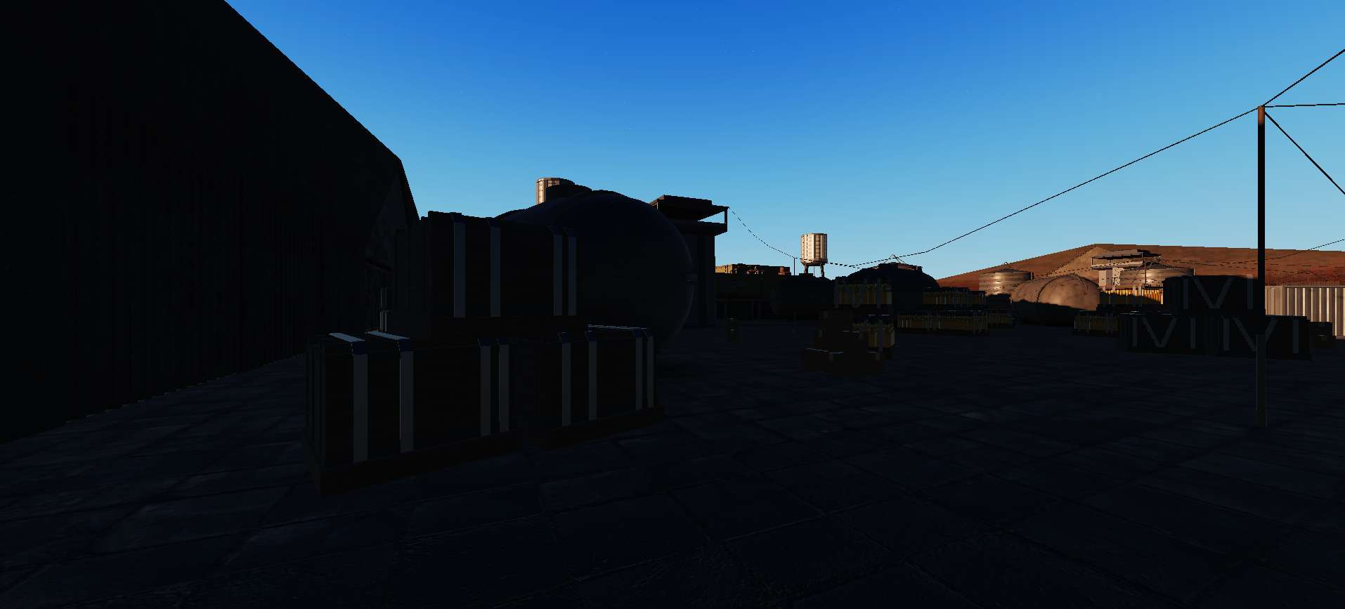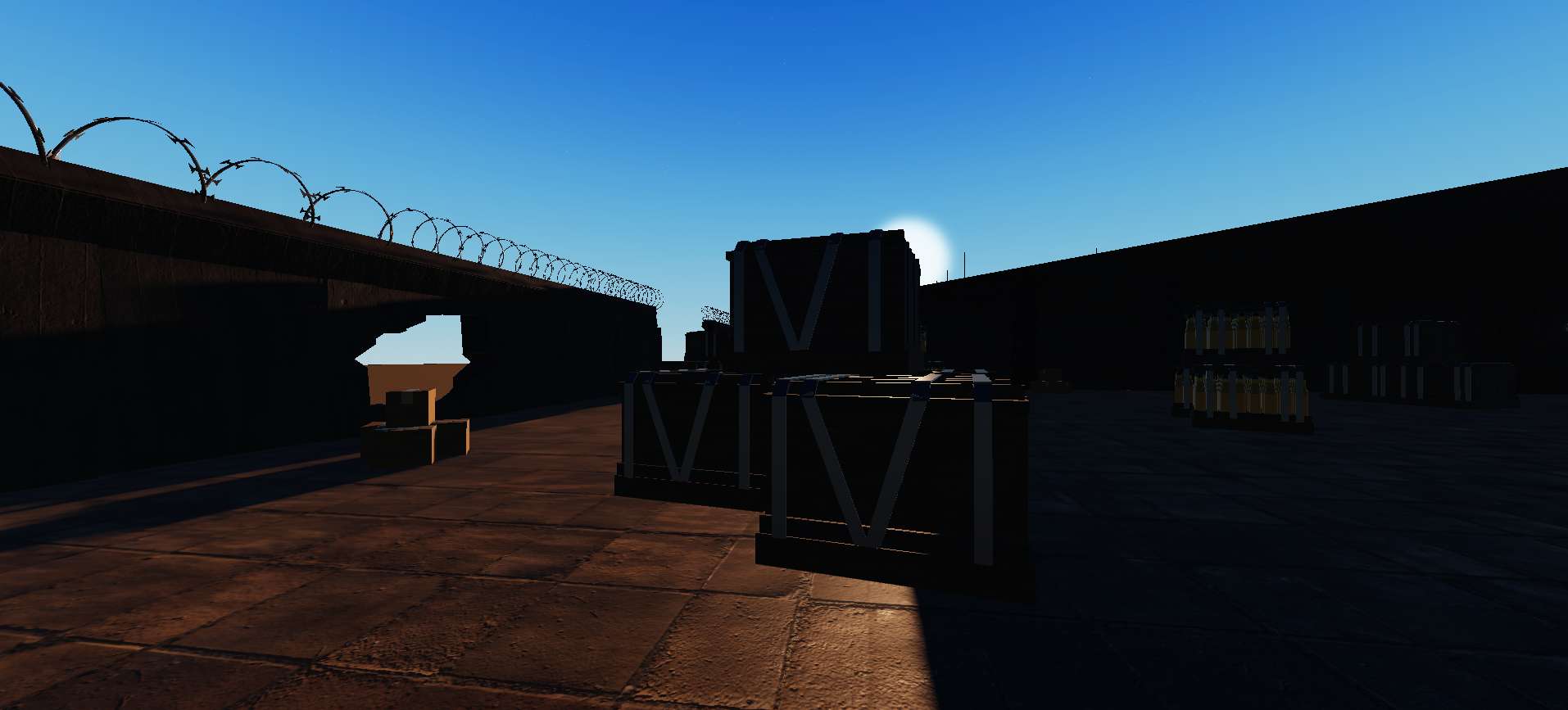 • Storage crates and filler HQ building
