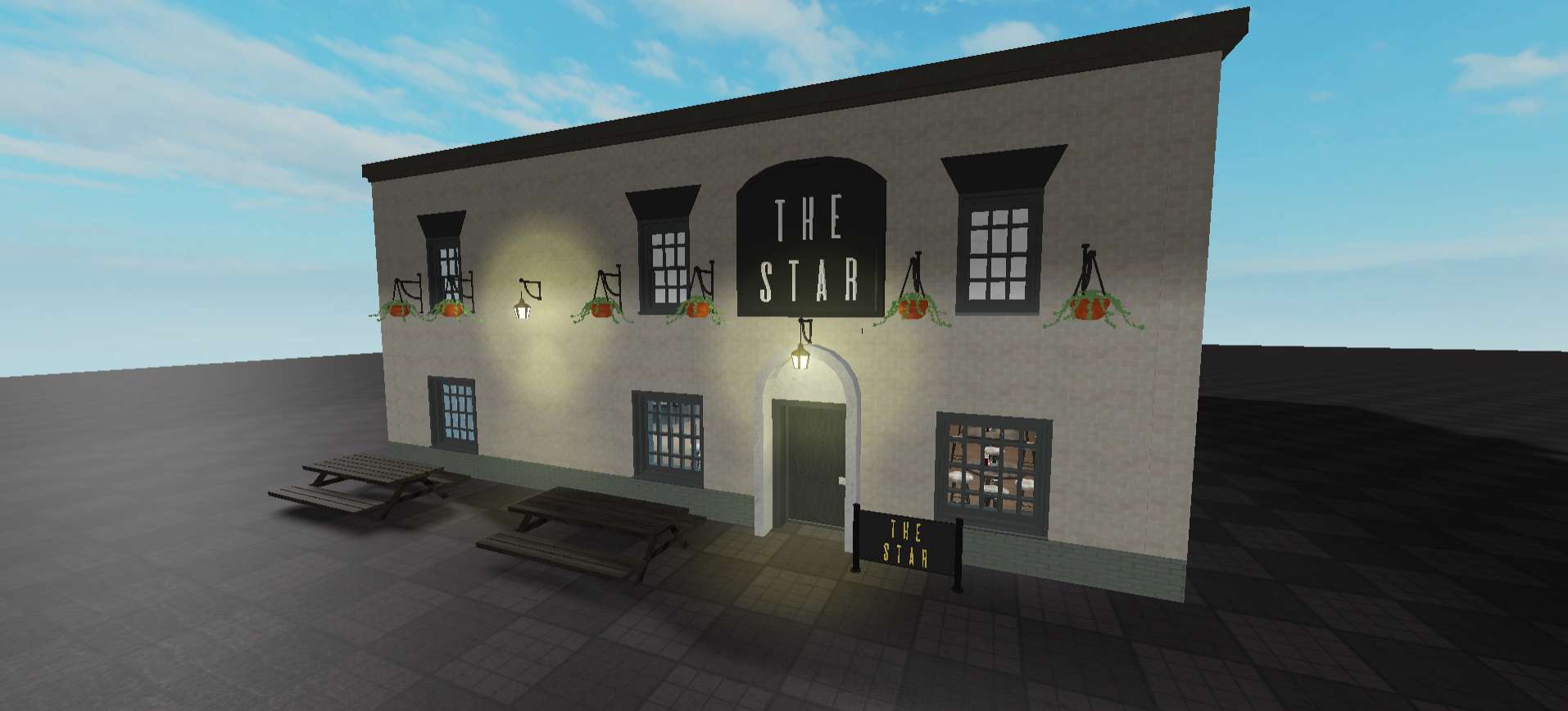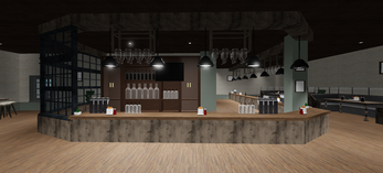 The Star provides an atmospheric dining and bar environment ideal for high end roleplay scenes. The entrance includes benches, plants, signs, and windows that set the mood immediately. Inside, tables, booths, and a fireplace create cozy dining zones, while the bar area is packed with props like televisions, beverages, lights, and stools. An empty second floor invites custom development for private events or VIP areas.