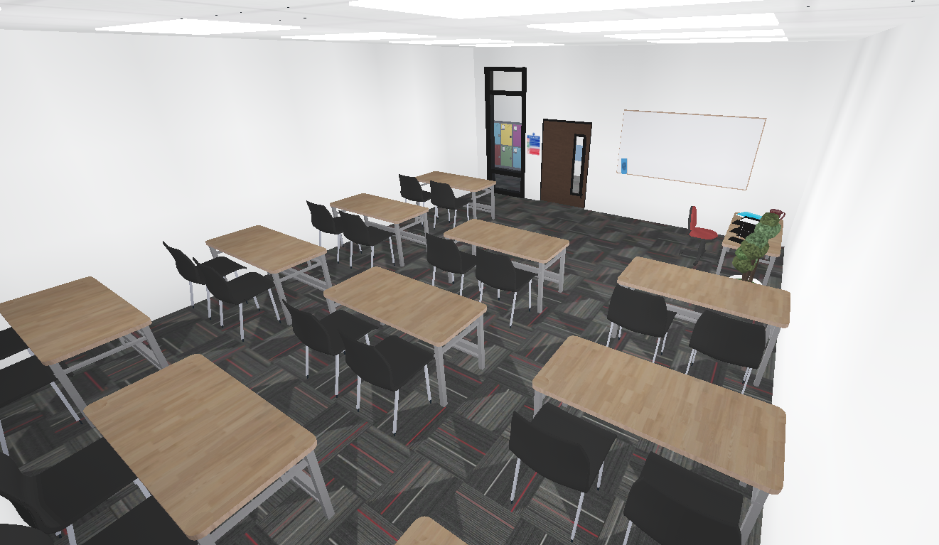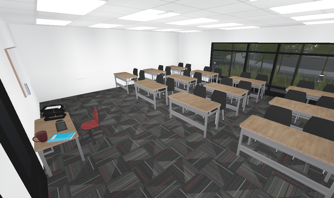 UK School provides a large scale educational environment built for immersive school based roleplay. The building spans two floors connected by hallways that lead to a wide range of subject specific classrooms, each offering natural views through large windows. Shared areas such as the entrance help desk, teacher rooms, and check in desk support organized flow. Exterior spaces include parking, housing areas, and open nature surroundings, allowing students and staff to move naturally through a realistic campus setting.