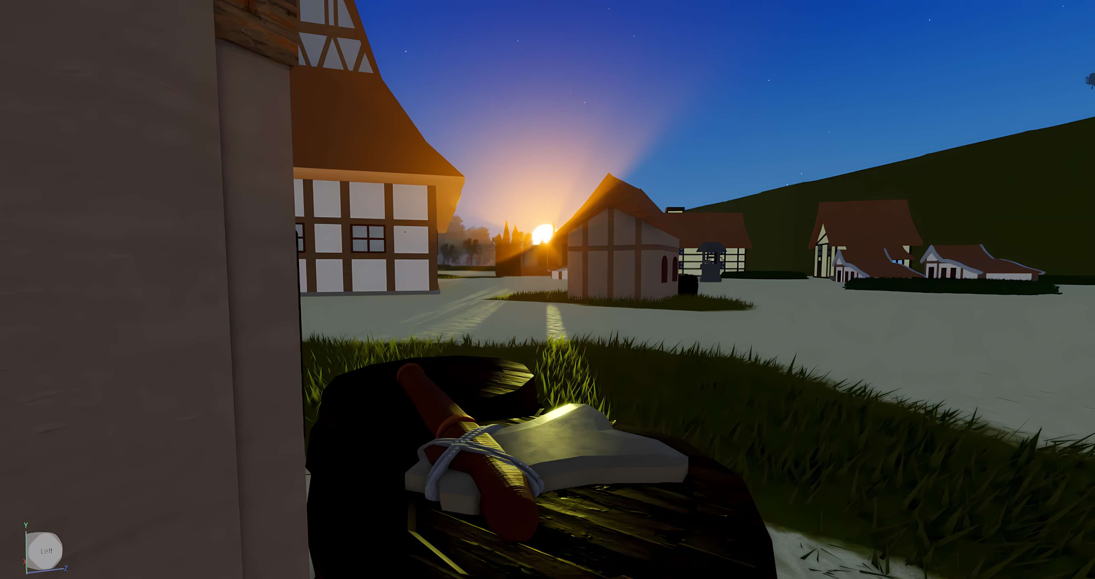 Big mountain in one corner of the map equipped with a small village, opposite to the village at the other end of the map is another village surrounded by a mote.